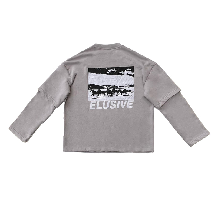The double-Sleeved T-shirt is crafted entirely from 100% cotton, offering a unique and innovative design that combines the look of a T-shirt & crewneck into a single piece. It also has double-layered sleeves and an oversized fit for a bold silhouette.